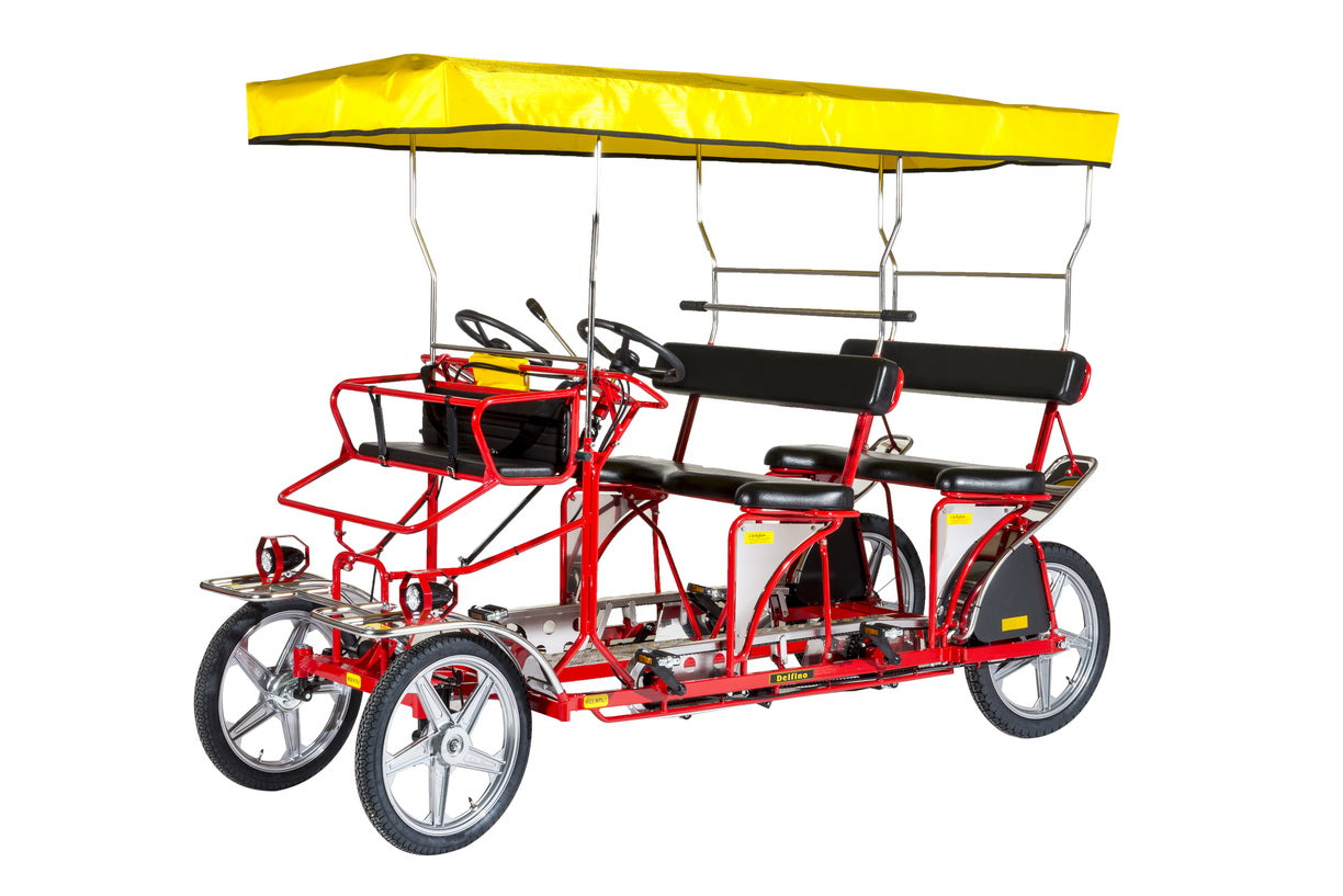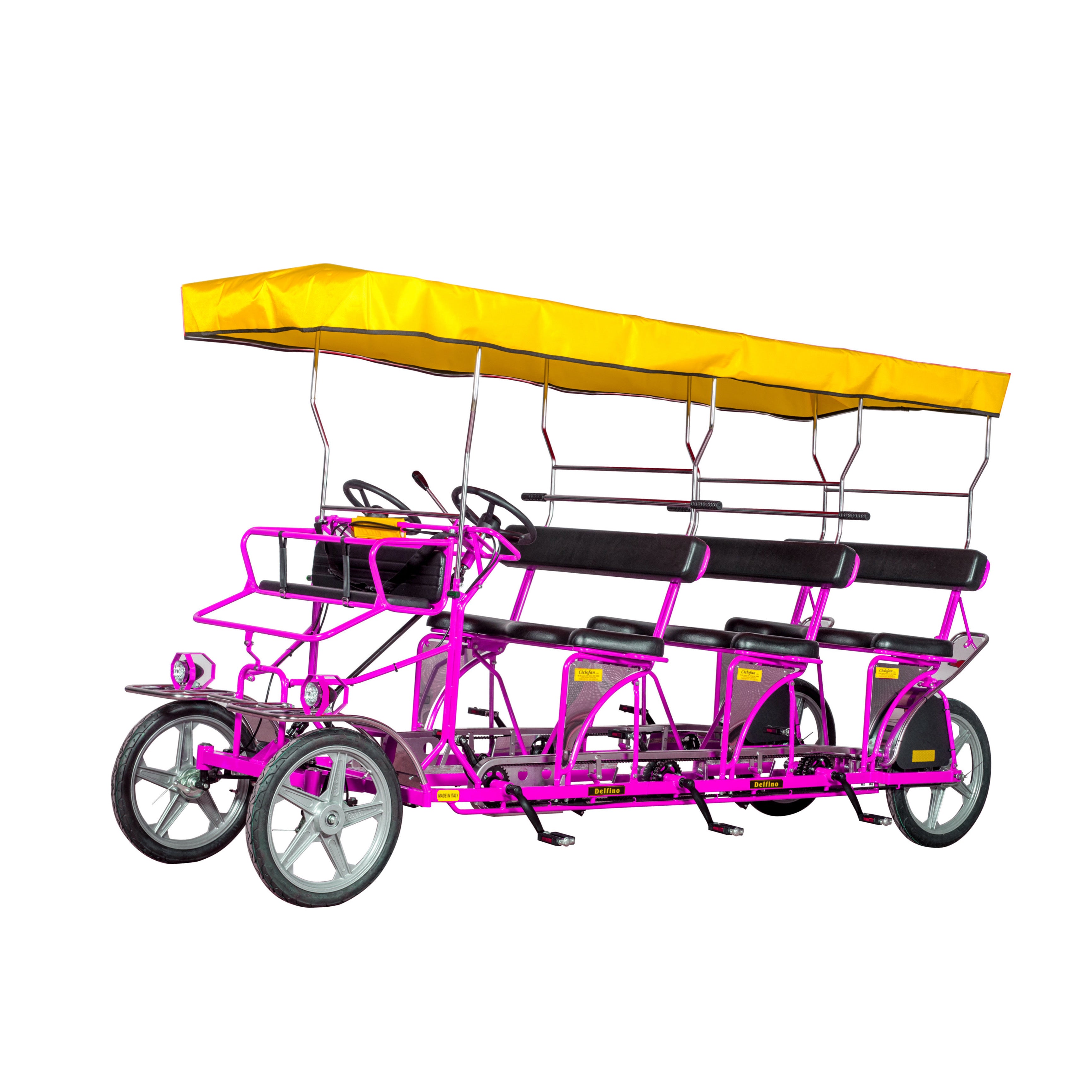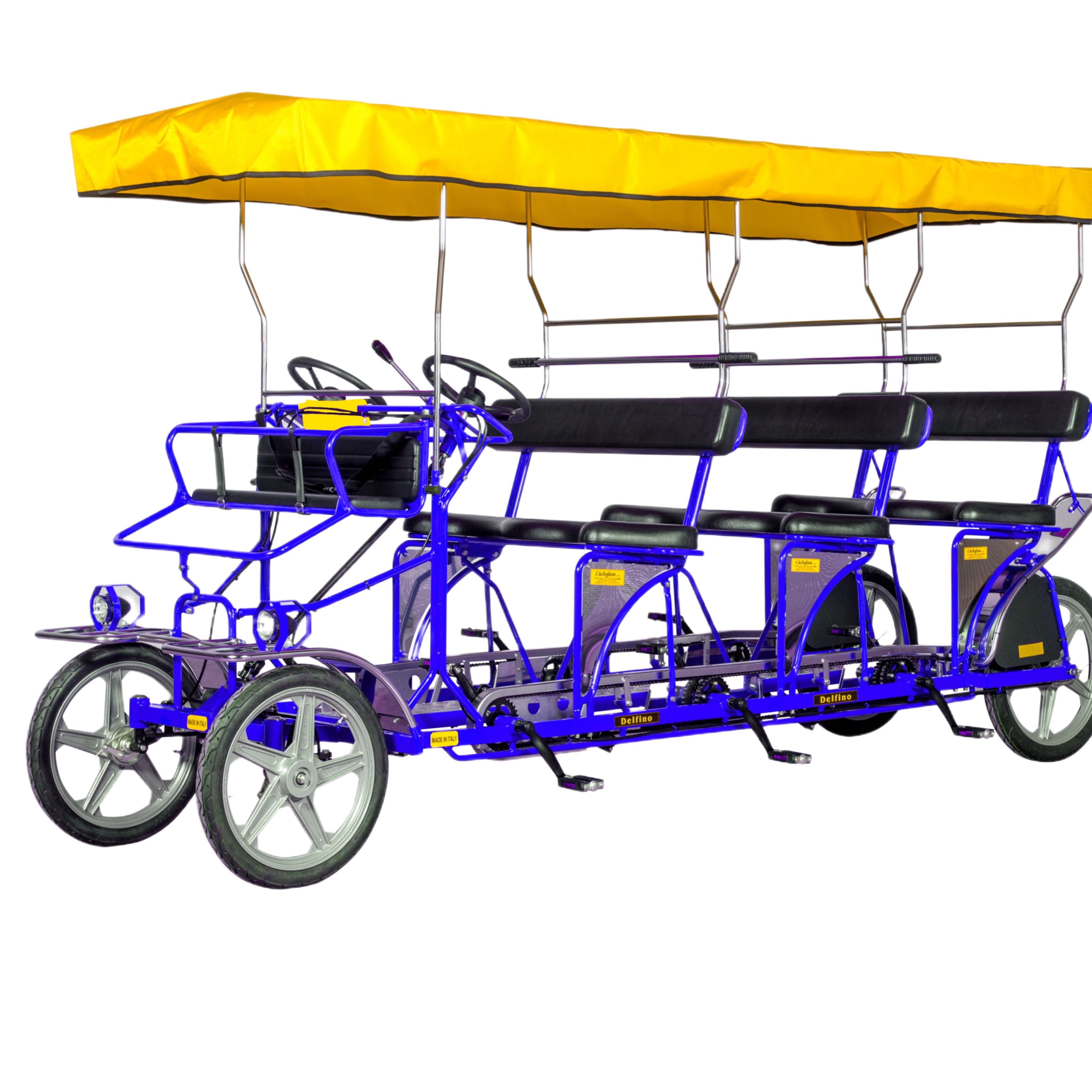 Introducing the Delfino Grande Surrey Bicycle: an Italian marvel, now within reach. Imported directly from Italy by our family-owned venture, this 6-seater Surrey Bike seamlessly blends classic charm with contemporary comfort. Meticulously handcrafted for endurance and opulence, it guarantees unforgettable journeys through picturesque landscapes or urban sprawls. Embrace the Italian tradition of leisurely cycling with the Delfino Grande Surrey Bicycle - where quality, elegance, and family adventure converge.