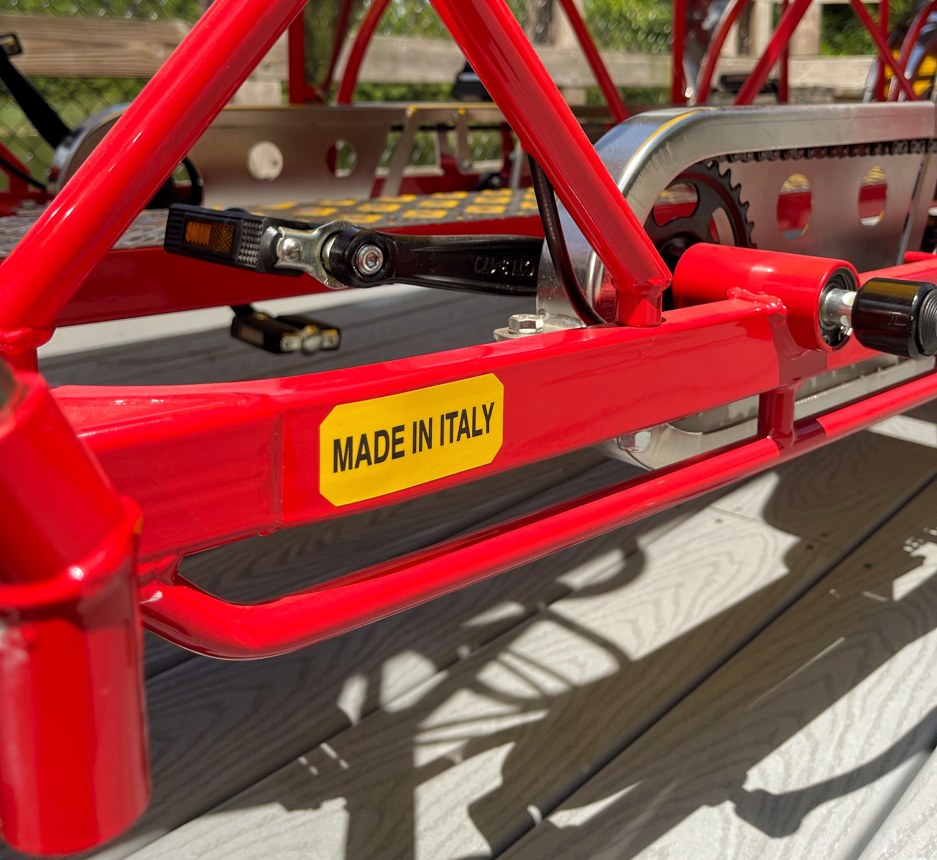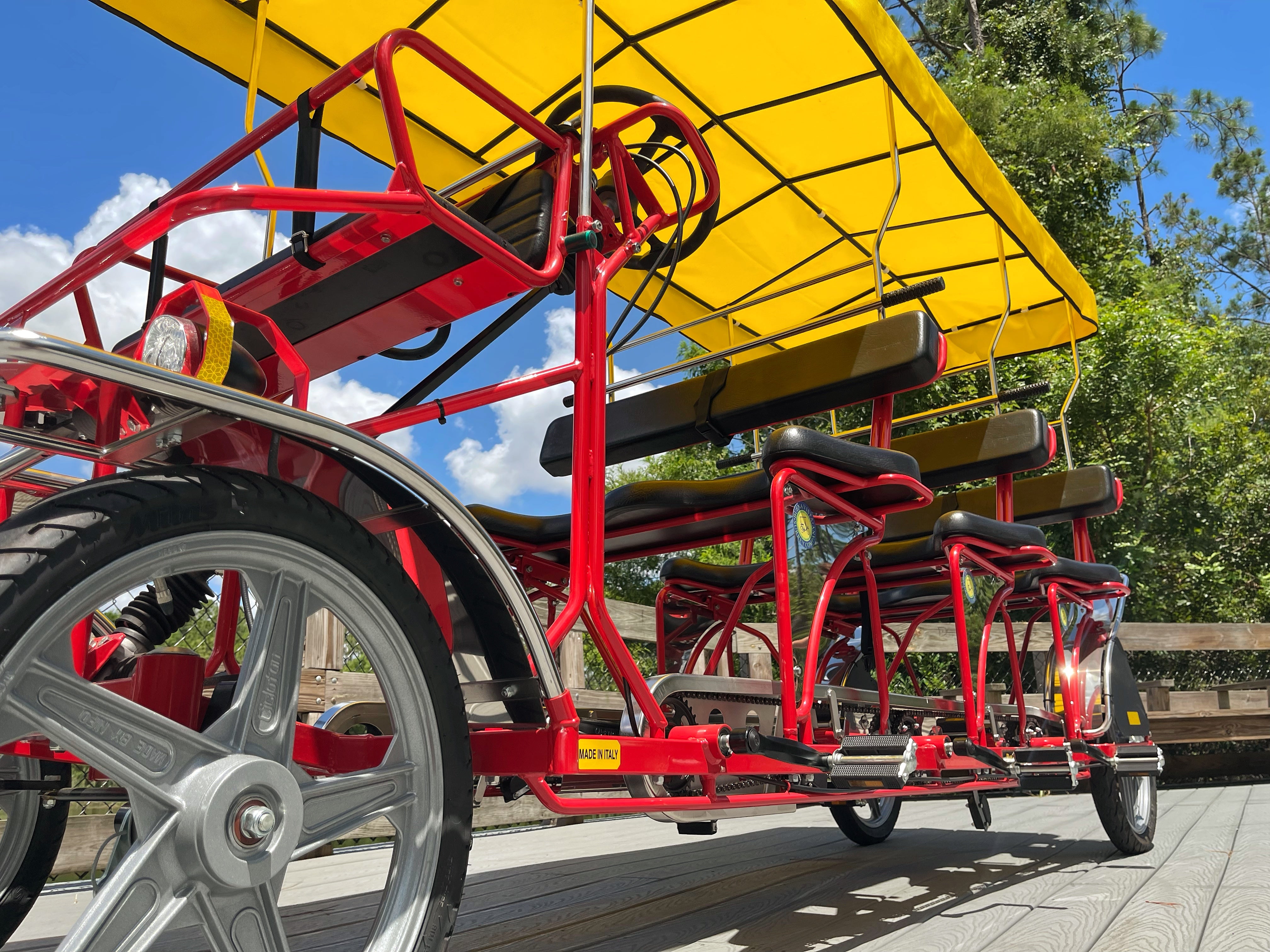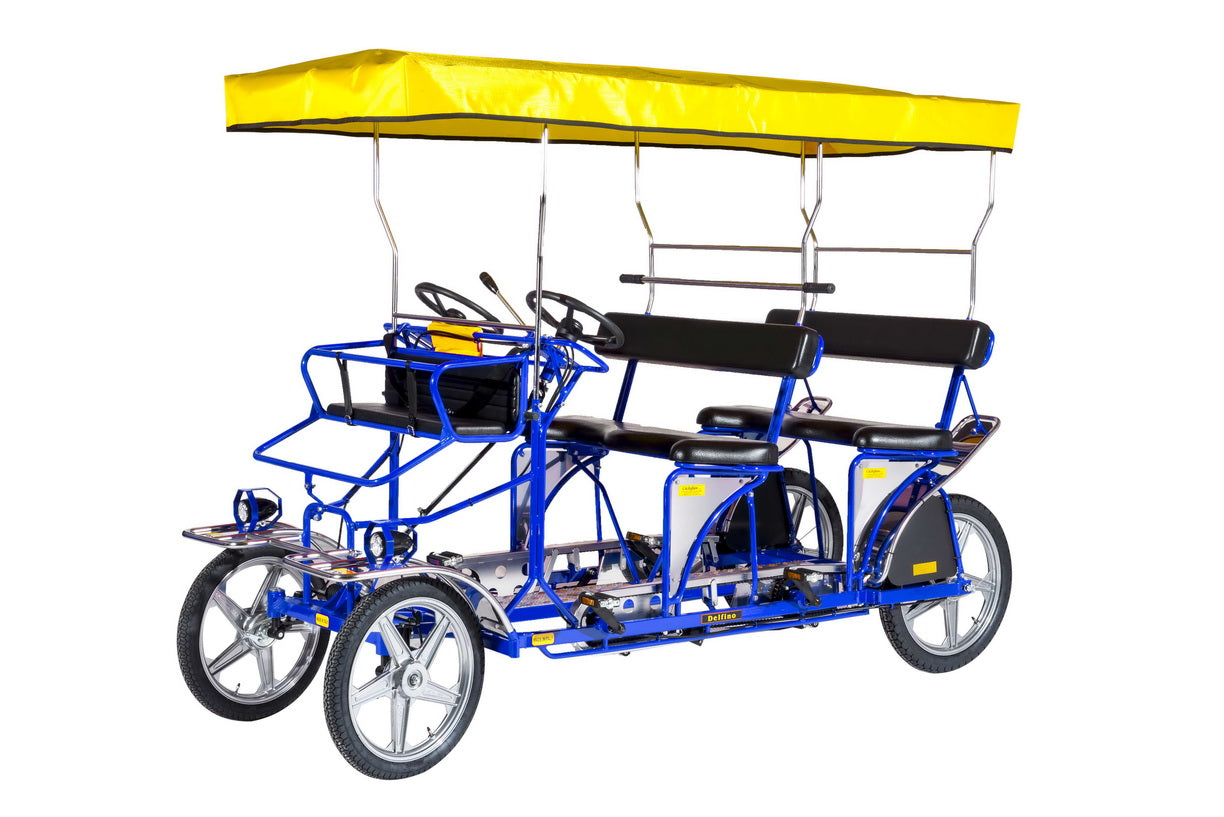 Introducing the Delfino Grande Surrey Bicycle: an Italian marvel, now within reach. Imported directly from Italy by our family-owned venture, this 6-seater Surrey Bike seamlessly blends classic charm with contemporary comfort. Meticulously handcrafted for endurance and opulence, it guarantees unforgettable journeys through picturesque landscapes or urban sprawls. Embrace the Italian tradition of leisurely cycling with the Delfino Grande Surrey Bicycle - where quality, elegance, and family adventure converge.