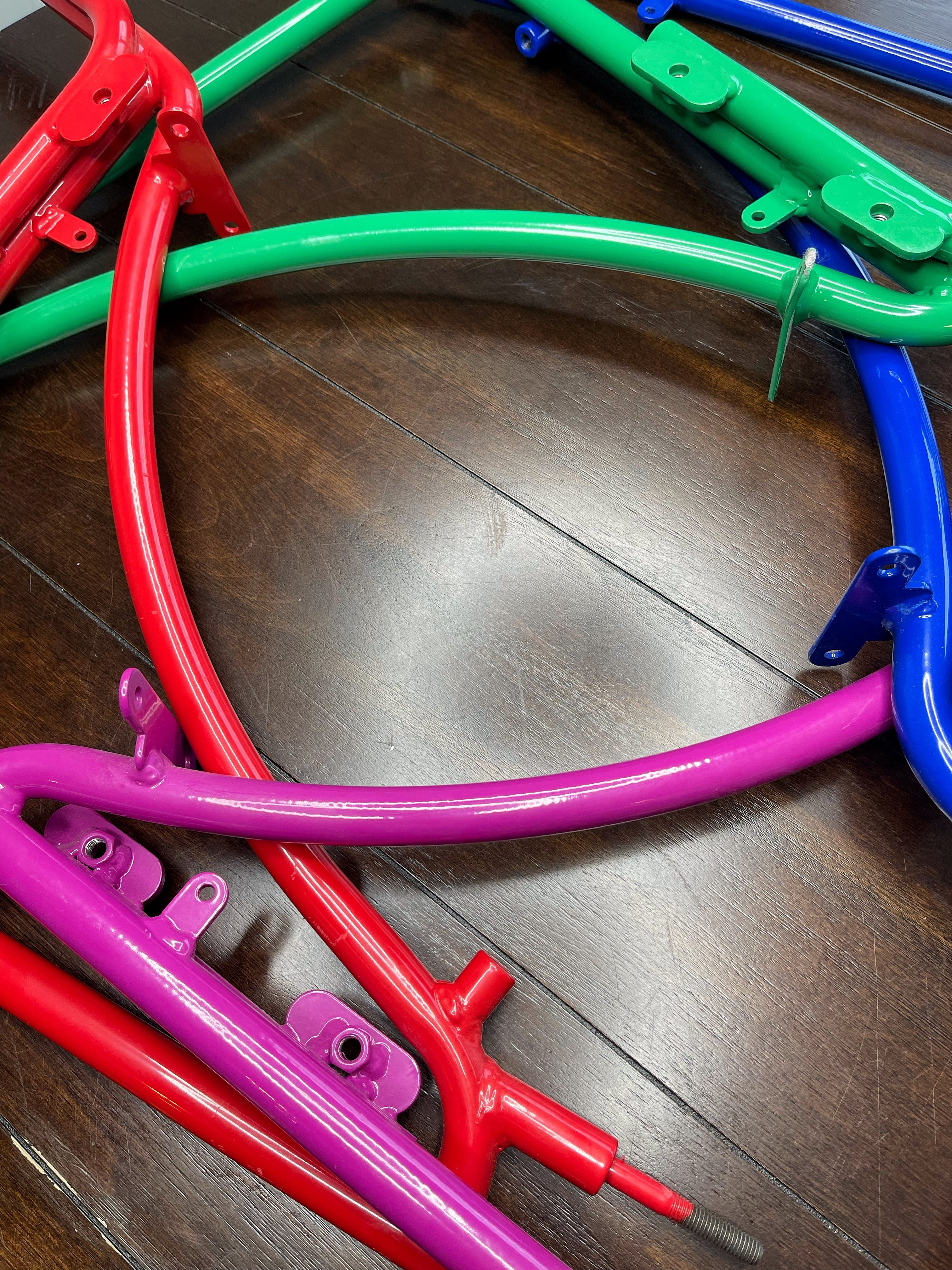 - Stainless steel features include: fenders bumpers, uprights, enclosed chain guards, and brake lever.
