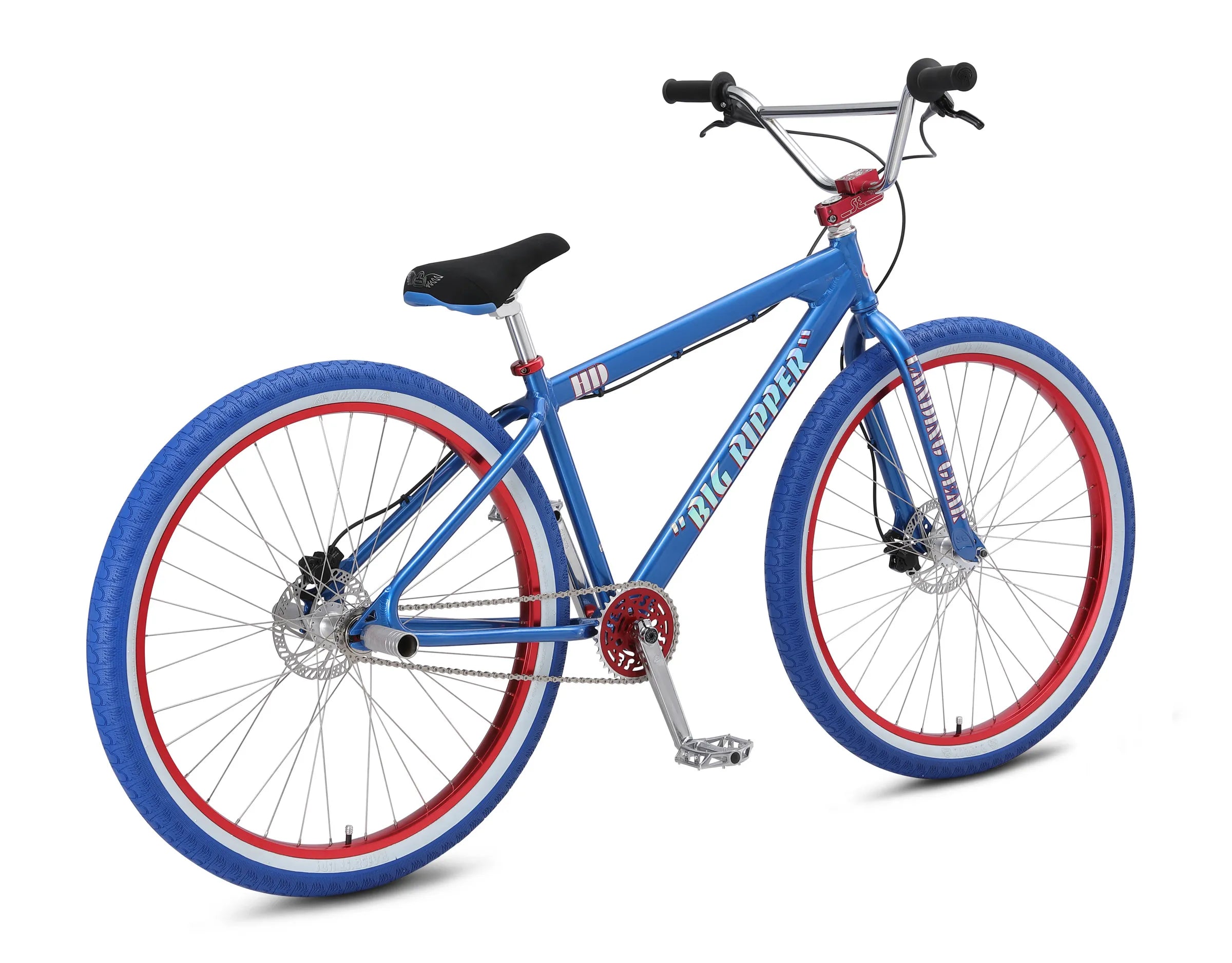 Equipped with Tektro hydraulic disc brakes and a LOUD 9-pawl 16T freewheel. The frame features an internally machined integrated head tube, Floval Tubing, looptail rear end, American bottom bracket, and classic PK Ripper style wishbone plate